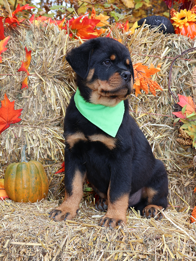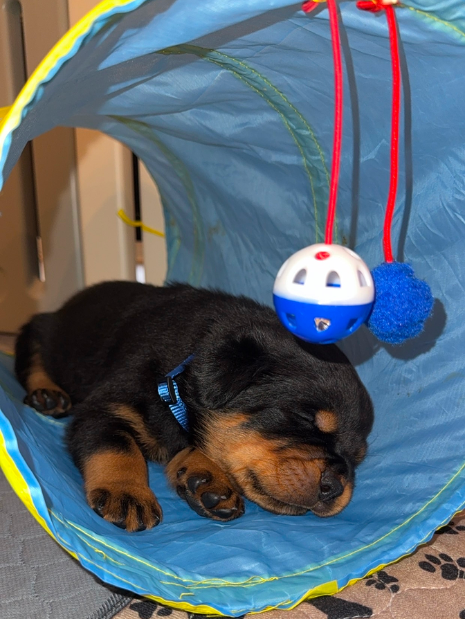 Doll Wizard Montenegro Rott est une femelle Rottweiler d’exception, alliant puissance, élégance et stabilité. Issue de lignées européennes prestigieuses, elle présente une structure parfaitement équilibrée, une tête typique et une expression noble.